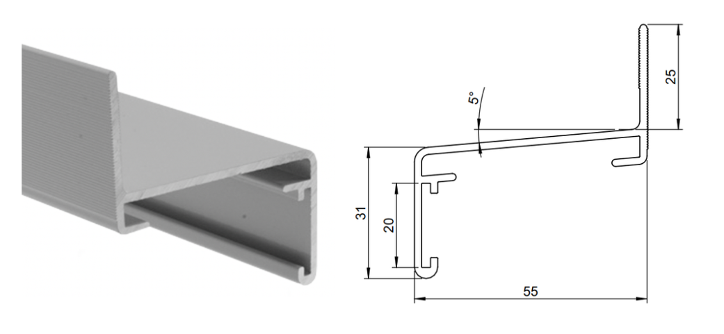 TOUWPROFIEL 31mm SCHUIN 50SW-Silber 2-L= 5,00 m